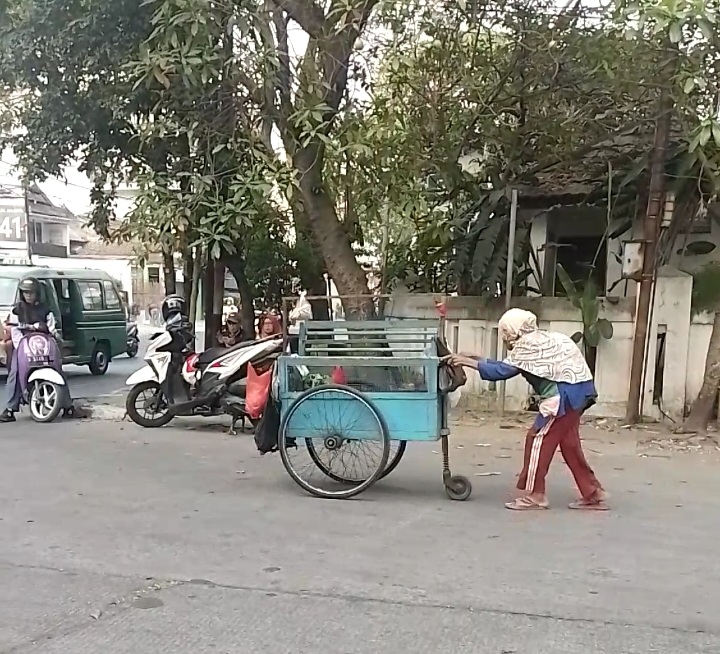 Punggungnya yang bungkuk, wajah dan kulitnya yang sudah sangat keriput membuat Nenek semakin terlihat renta. Untuk mendorong gerobaknya terkadang nenek merasa berat apalagi di jalanan menanjak.