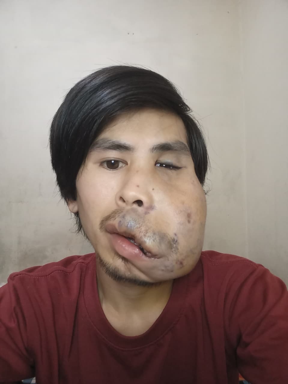 Akbar (30 tahun) telah hidup dengan tumor yang menyumbat pembuluh darah di area wajahnya sejak kecil. Kondisi ini membuatnya harus menjalani pengobatan panjang sejak usia dini. Namun perjuangan itu tak pernah benar-benar selesai. Pengobatan Akbar sering terpaksa berhenti. Bukan karena ia sembuh, melainkan karena biaya yang tidak lagi sanggup dipenuhi.